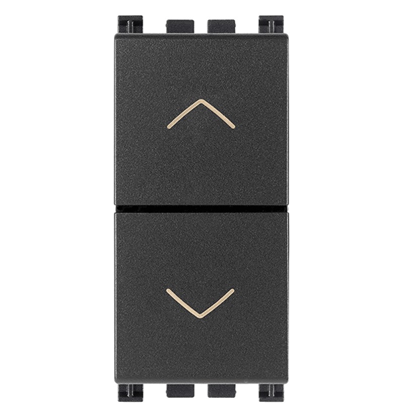 Deux boutons-poussoirs verrouillés Vimar Arke 1P NO + 1P NO 10 A 250V, avec flèches directionnelles sérigraphiées, 1 module, couleur gris.