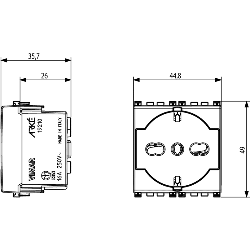 Vimar Arke prise universelle 10/16A 2P+T gris 19210