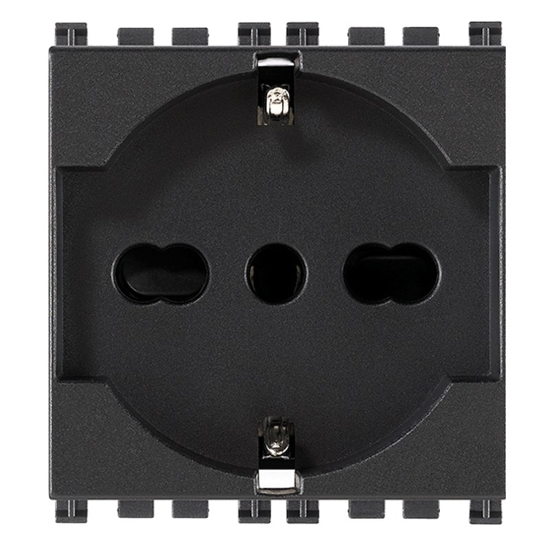 Prise universelle Vimar Arke 2P+T 16A 250V, norme italienne P40, couleur gris, 2 modules.