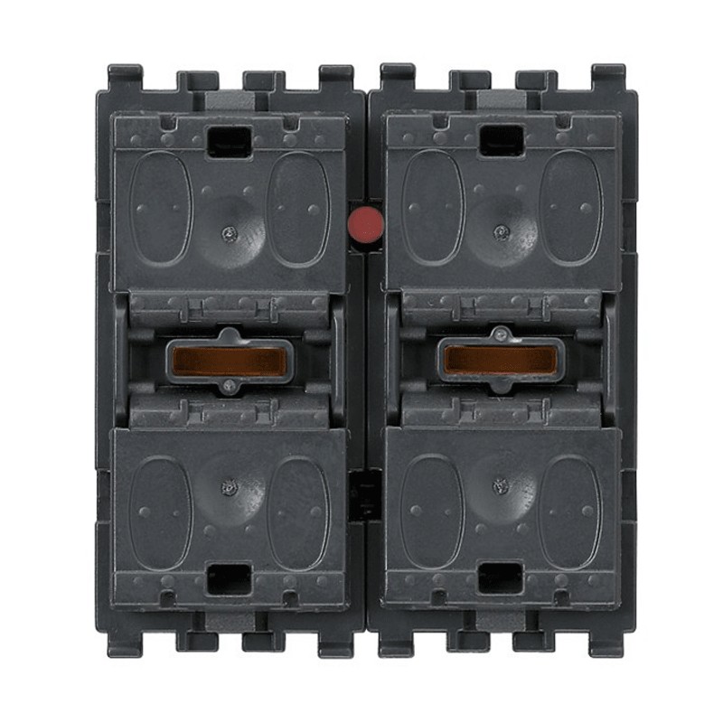 Unité de commande de rechange Vimar Eikon avec deux boutons basculants et actionneur pour 1 volet roulant avec sortie relais de rechange pour moteur cos ? 0,6 2A 120-230 V, à compléter avec des boutons interchangeables 1 ou 2 modules.