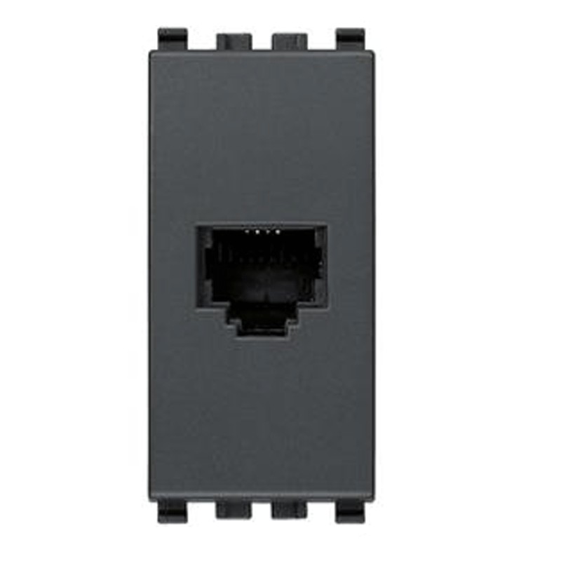 Prise RJ11 Vimar Eikon, 6 positions 4 contacts (6/4), bornes à vis, 1 module gris anthracite.