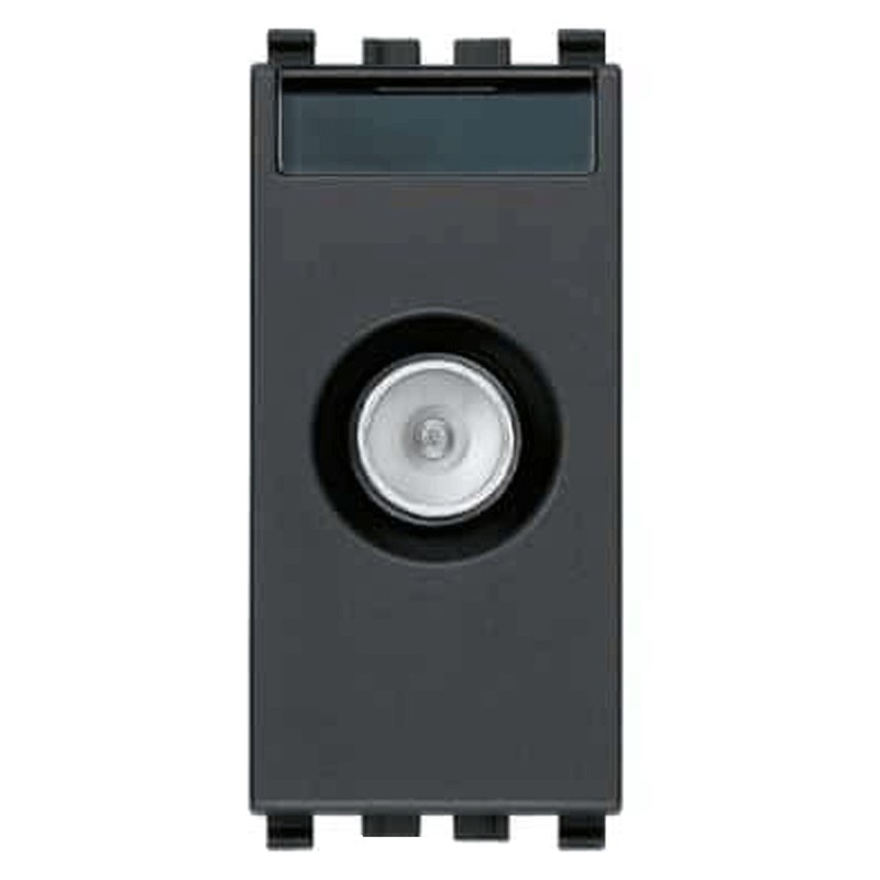 Prise coaxiale Vimar Eikon TV-RD-SAT, 5-2400 MHz, trou de passage, avec connecteur mâle, atténuation shunt 10 dB, 1 module, couleur grise.