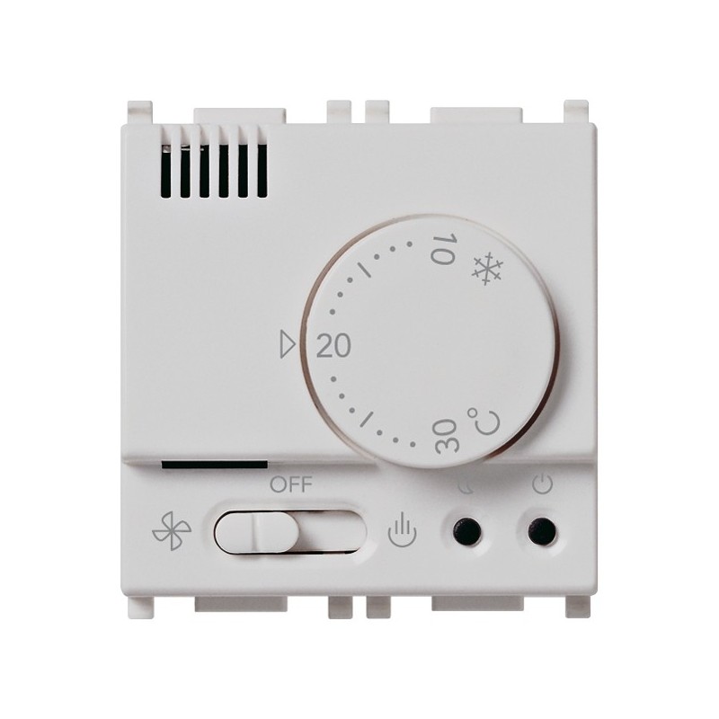 Thermostat d'ambiance Vimar Plana Blanc. Le thermostat relié à la chaudière ou la climatisation est utilisée pour réguler la température de l'environnement ambiant. Ne pas régler la tension par la minuterie, mais seulement de la température.