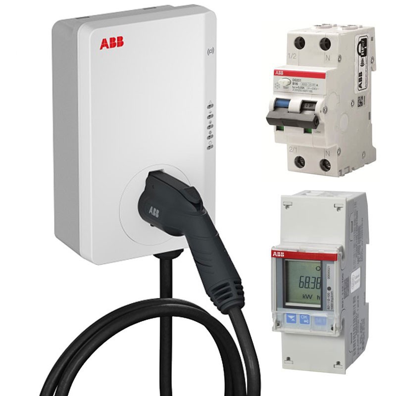 Kit Energy+ Abb Wallbox 7,4KW avec câble et prise T2 Protection de ligne RFID et compteur bidirectionnel