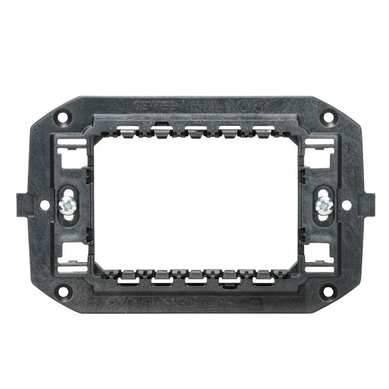 Supporto per qualsiasi scatola 3 moduli (frutti). Questo supporto permette di agganciare solo le placche Gewiss Chorus.