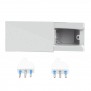 Presa a scomparsa 4box Hide con una presa Side universale, con telaio e coperchio scorrevole, colore bianco. Essa dispone di un sportellino che permette di nascondere le prese anche con cavi inseriti. Va montata su qualsiasi scatola incasso 4 posti. Non necessita di supporto o di altri componenti.