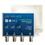 Amplificatore da palo FTE serie AMP a 3 ingressi VHF / UHF / UHF, con guadagno di 26 dB e livello d'uscita di 115 dB, amplificazione separata, alimentazione 12 V, completamente schermato e dotato di contenitore plastico antipioggia.