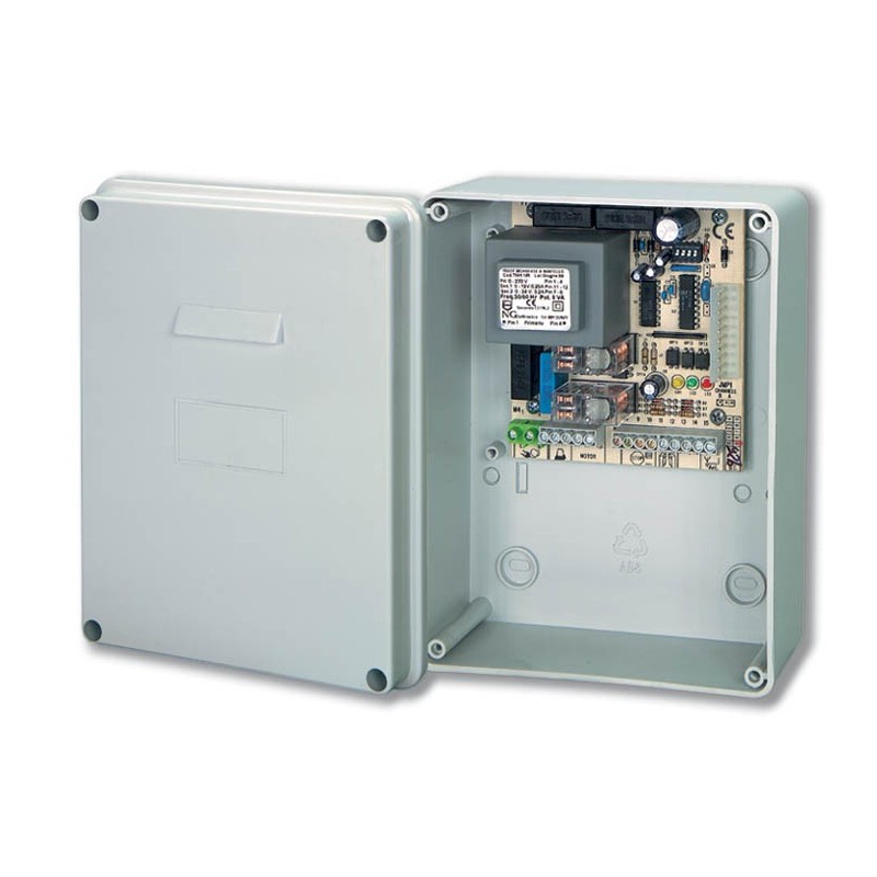 La PCM1 è una centralina di automazione per serrande, ed è funzionante solo con motoriduttori dotati di finecorsa, in quanto sono utili al processore per stabilire la logica di funzionamento, i tempi e i sensi di apertura e chiusura. Essa svolge tutte le funzioni di controllo del motoriduttore e delle periferiche di sicurezza (fotocellule e lampeggiatore) durante le operazioni di apertura e di chiusura della serranda. Il comando è dato dall'operatore tramite selettore a chiave SC1, del tipo STOP - APRE / CHIUDE, o tramite una coppia di pulsanti, uno di tipo NC per lo STOP di emergenza, l'altro, di tipo NA, per gli impulsi di controllo.