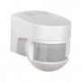 Sensore di movimento Vemer Sensor 140, con installazione a parete e tecnologia a infrarossi. La testa del sensore è ruotabile e inclinabile per coprire il campo di rilevamento desiderato. Sensibilità e ritardo di intervento sono impostabili tramite trimmer.
