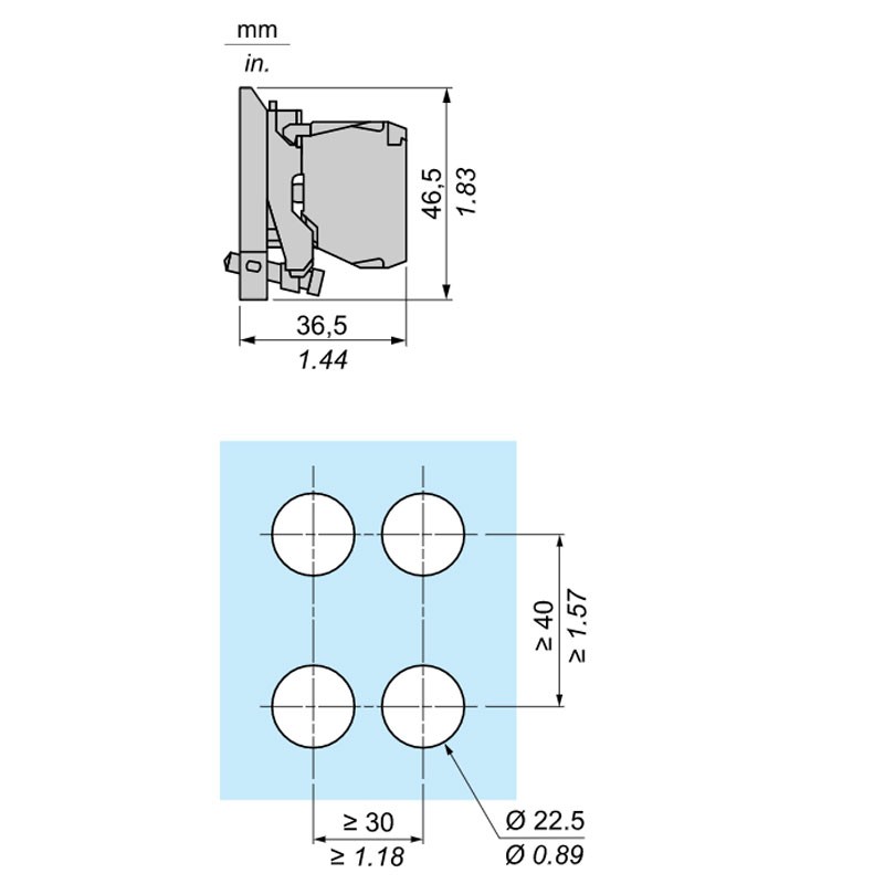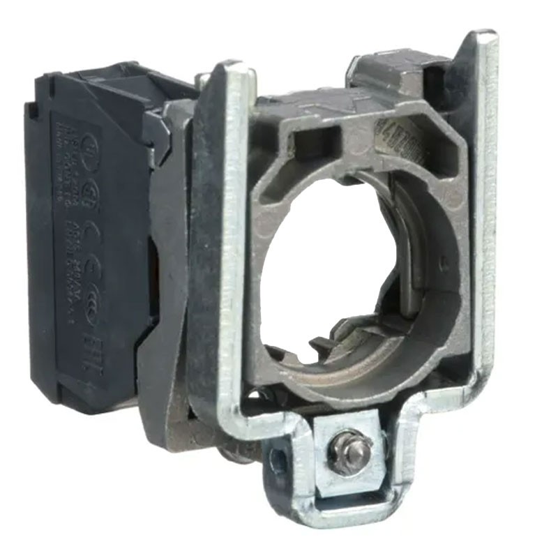 L'elemento di contatto singolo Harmony XB4 di Schneider Electric è preassemblato su un'unità base di fissaggio. Ha 1 contatto NC. Questo base di fissaggio è premontato con un elemento di contatto. È sufficiente aggiungere una testa a questo gruppo per ottenere un pulsante completo e pronto all'uso.