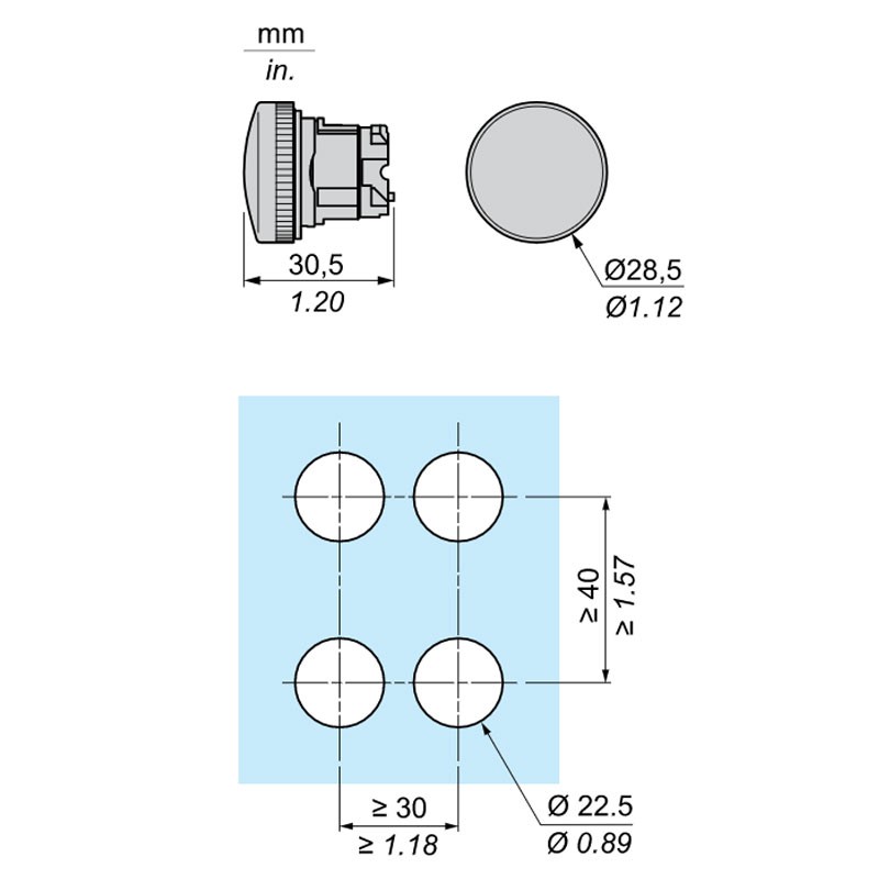 - Codice di composizione elettrico: P3 in Montaggio anteriore diretto sul pulsante con BA 9s, P4 in Montaggio anteriore diretto sul pulsante con BA 9s and transformer