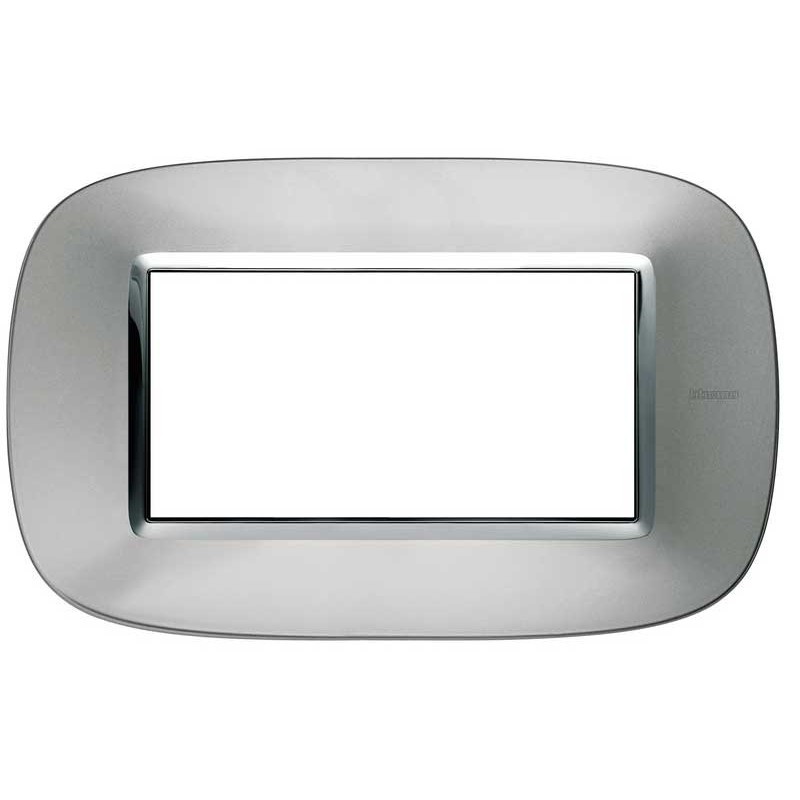 Placca ellittica 4 posti in metallo Bticino Axolute per supporto H4704. Colore: ALLUMINIO. Non è possibile installare la placca su altre serie Bticino ma solo su serie Axolute.