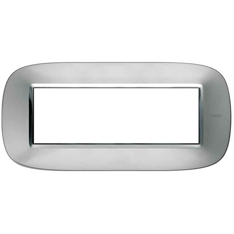 Placca ellittica 6 posti in metallo Bticino Axolute per supporto H4706. Colore: ALLUMINIO. Non è possibile installare la placca su altre serie Bticino ma solo su serie Axolute.