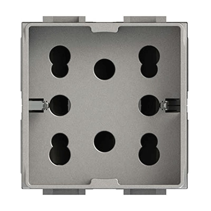 Presa Elettrica Universale Bipasso e Schuko 10/16A 2 moduli Side 4Box per LivingLight colore grigio tech. E' possibile inserire al suo interno 3 spine piccole, grandi e anche la presa schuko.