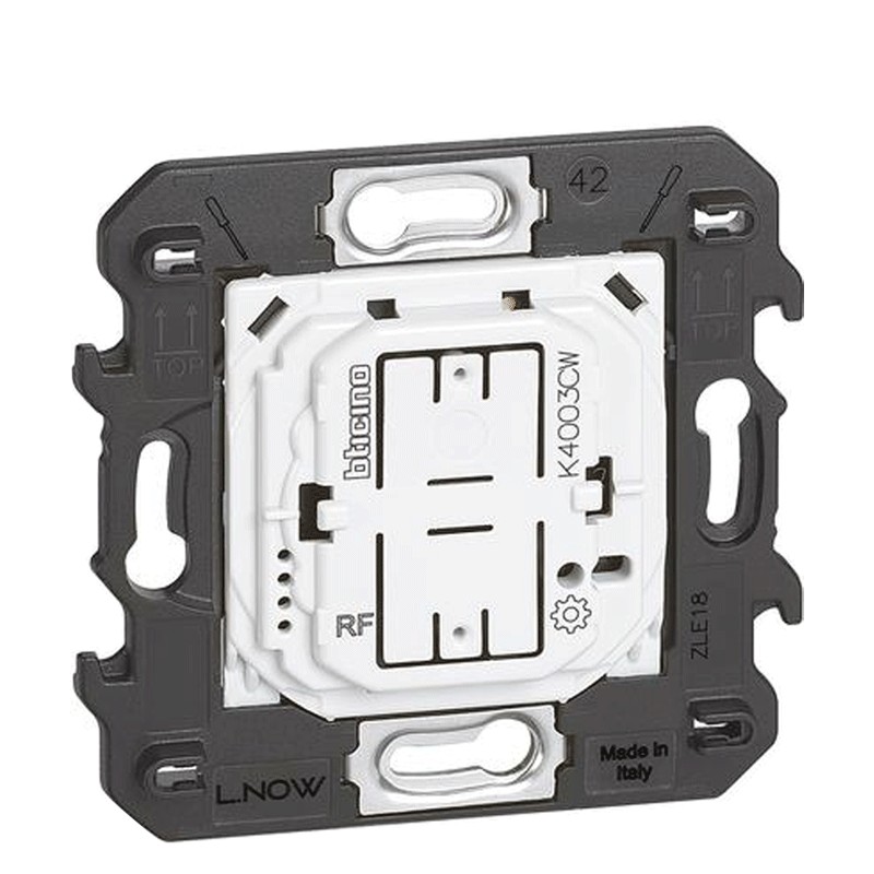 Comando luci wireless Bticino Living Now 2 moduli, Permette il controllo ON/OFF di uno o più dispositivi connessi per il comando di luci. Installazione superficiale con adesivi riposizionabili (forniti a corredo) o su scatole da incasso. LED integrato per la segnalazione batteria scarica. Alimentazione a batteria 3V tipo CR2032 (fornita a corredo) con autonomia di 8 anni.