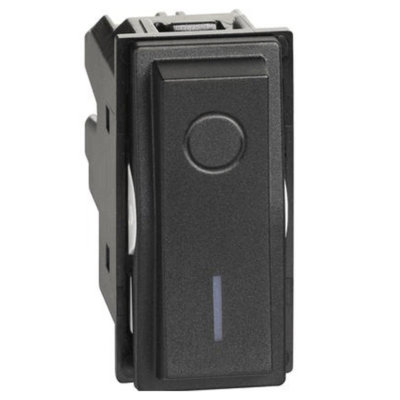 Interruttore Bipolare Bticino Living Now 2P 16A, 250 Va.c., colore nero, illuminabile, 1 modulo. L'interruttore solitamente viene usato per gli elettrodomestici di casa.
