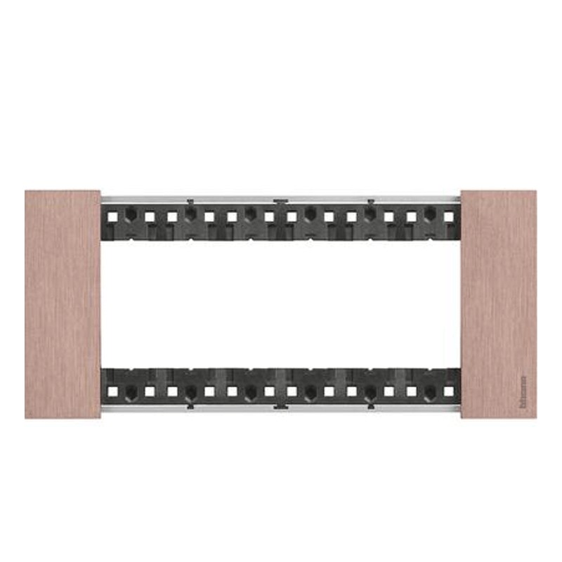 Placca Bticino Living Now 6 posti colore Rame. Va applicata solo su supporto K4706, materiale: zama, dimensioni altezza 86 - larghezza 192.5.