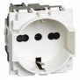 Presa Schuko Bticino Living Now 10/16A colore bianca, 2 moduli, interasse 19 mm e 26 mm in configurazione bipasso, alveoli protetti, contatti laterali di terra per spine standard tedesco, adatta per: spine standard Italia 2 P e 2 P+T 10/16 A, spine standard tedesco 2 P+T 16 A. La presa elettrica schuko detta anche presa tedesca permette di inserire al suo interno qualsiasi spina(piccola,grande e schuko).