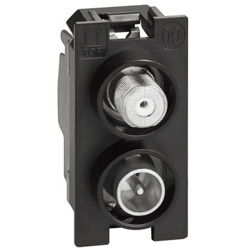 Presa TV e SAT Bticino living Now diretta demix 1 Modulo, per impianti di antenna TV monoutenza anche telealimentati e centralizzati in derivazione, impianti via satellite monoutente e centralizzati in derivazione con passaggio di corrente e di segnale per la selezione dei canali,connettore TV maschio Ø 9,5 mm,connettore SAT tipo F.