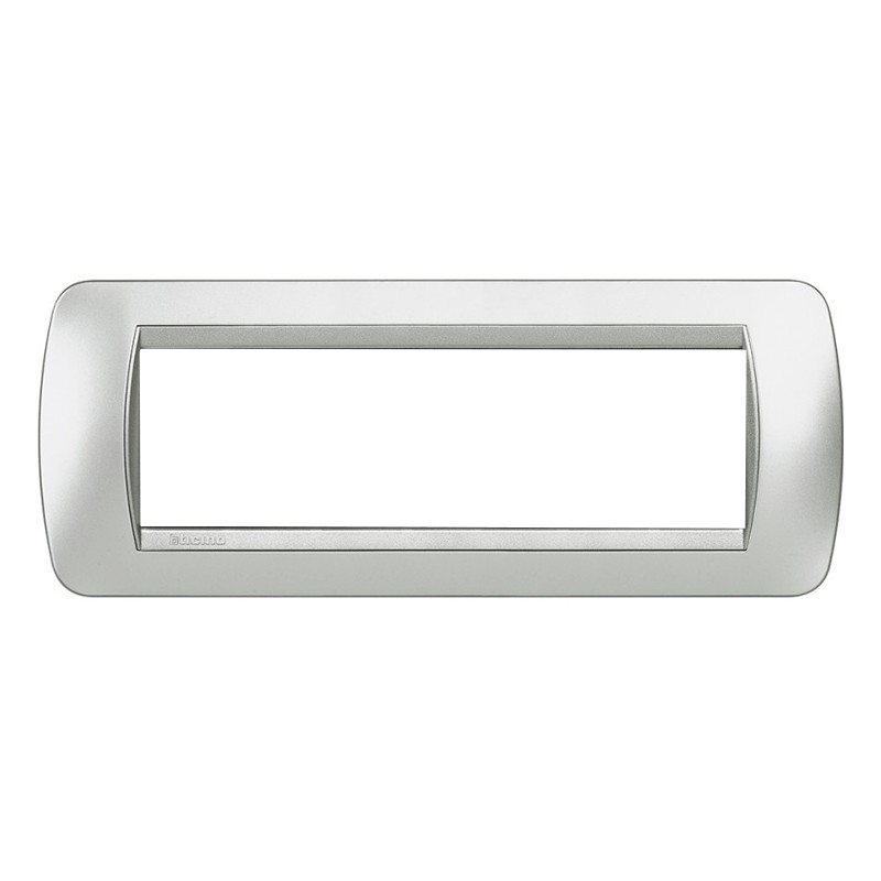 Placca Bticino LivingLight (ex international) 7 moduli (frutti,posti) colore grigio tech (cornice interna colore tech). La placca può montare su supporto L4707 (vecchio modello fuori produzione) e su LN4707.