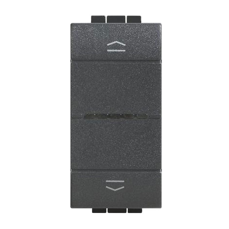 Comando Wireless per Tapparelle Bticino LivingLight Antracite, con batteria, permette il controllo di uno o più comandi tapparella connessi. Può essere installato in qualsiasi scatola da incasso senza alcun cablaggio su supporti LN4703/04/07.