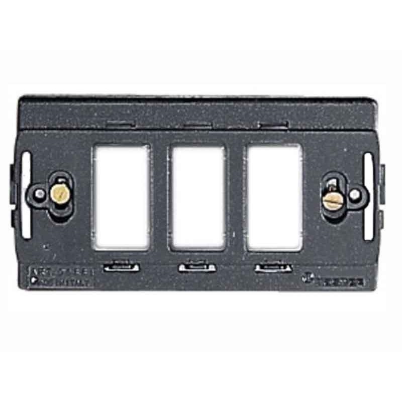 Supporto Master, 3 moduli ,appartenente alla serie '16000',in policarbonato con viti. Questo supporto è adatto per scatole da incasso rettangolari, ed è compatibile anche con gli interruttori della serie Bticino Magic.