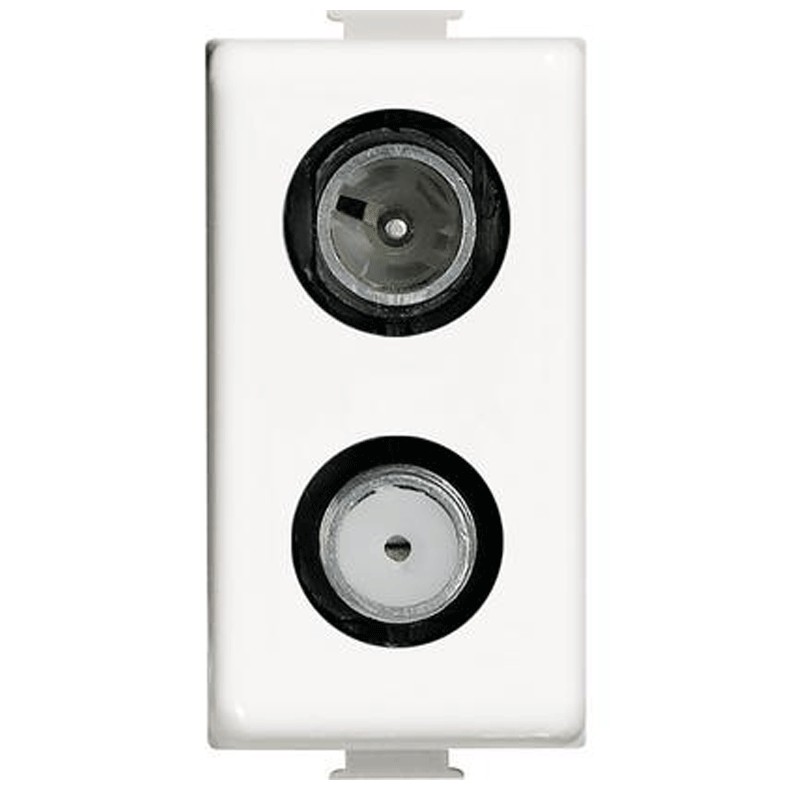 Presa Bticino Matix coassiale diretta demiscelata per impianti di antenna TV monoutenza anche telealimentati e centralizzati in derivazione, impianti via satellite monoutente e centralizzati in derivazione con passaggio di corrente e di segnale per la selezione dei canali connettore TV maschio Ø 9,5 mm connettore SAT tipo F.