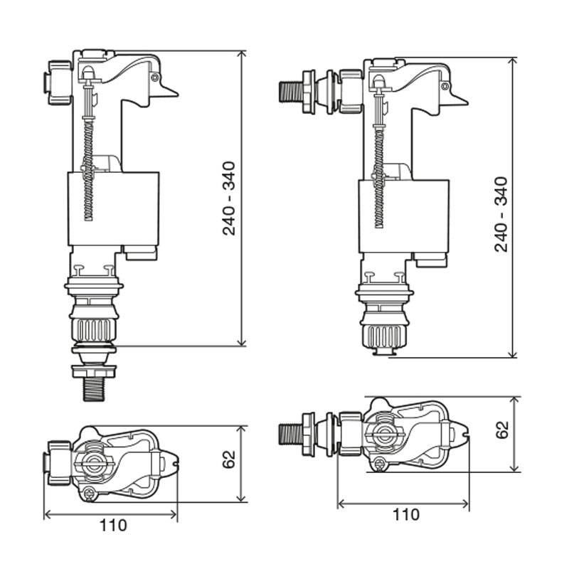 Galleggiante per Wc con attacco sia inferiore che laterale con lo stesso cannotto modello Oli IVC100 Plus 3/8 ottone:
