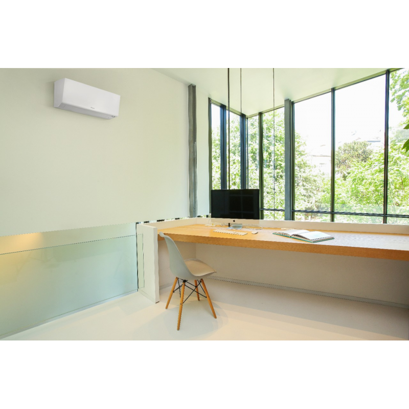 La silenziosità dell'unità interna di soli 19 dB(A) a bassa velocità di ventilazione, contribuisce ad ottenere un rilassamento ottimo e duraturo. Il telecomando è compatto e con comandi chiari ed ergonomici; inoltre offre un comodo sportello scorrevole sotto il quale vi sono i tasti per accedere all'alle funzioni più evolute.