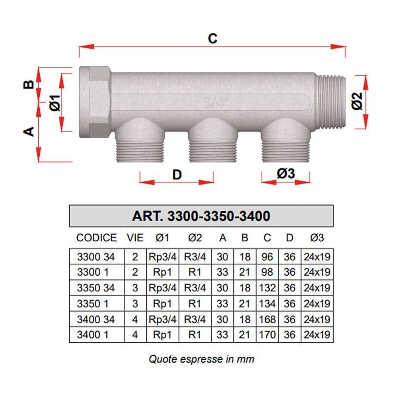 Collettore Far 3300 2 vie MF 3/4" per impianti riscaldamento 3300 34