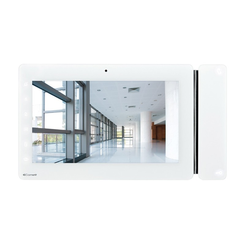 - Monitor Maxi a colori da incasso (utilizzando la scatola opzionale art. 6817) o a parete (con supporto opzionale art. 6820) con schermo da 7" / 16:9, fonica vivavoce full-duplex e comandi touch sensitive