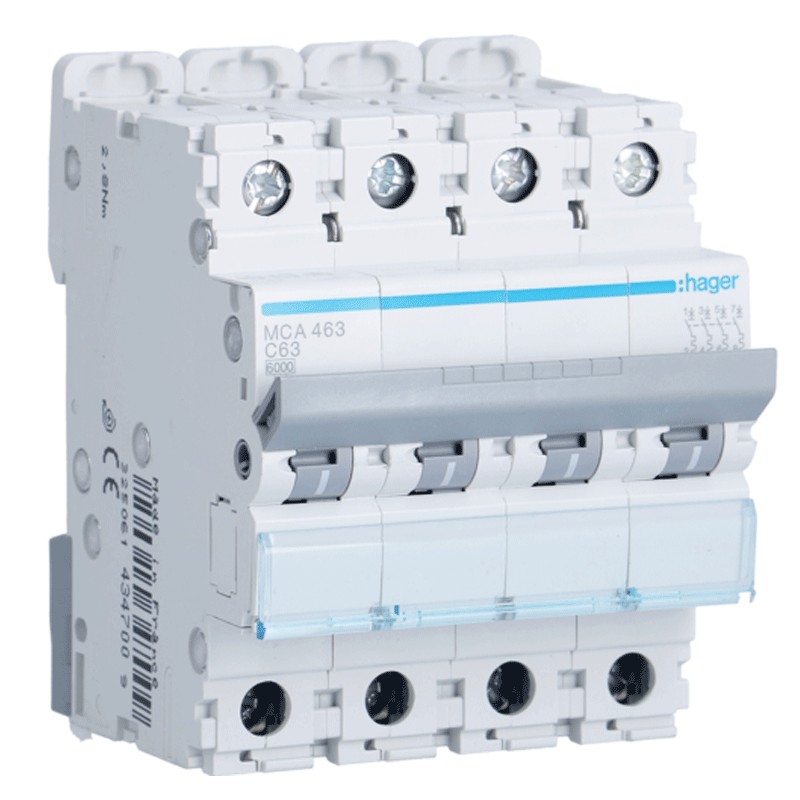 Interruttore magnetotermico Hager 4P 63A 6KA C 4 moduli MCA463