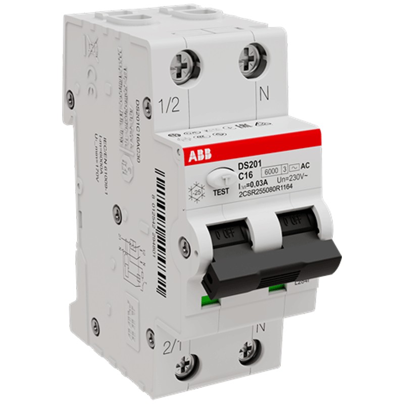 Magnetotermico differenziale Abb 16A 1P+N 30MA AC 6KA 2M DS201C16AC30