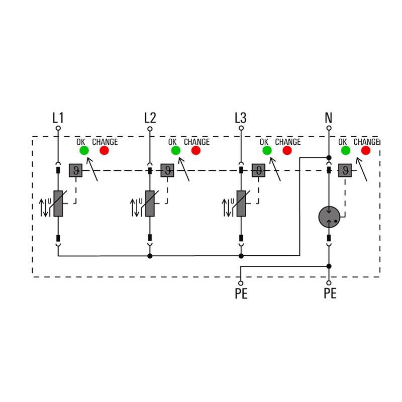 - Corrente di scarica Imax. (8/20 µs) (N-PE) 65 kA
