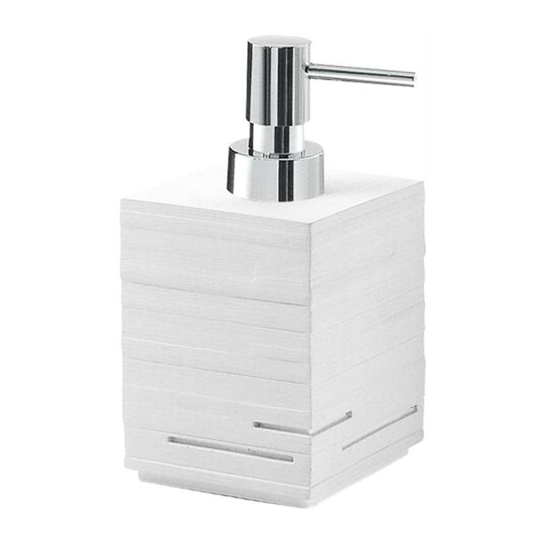 Dosasapone dispenser liquido d'appoggio Gedy Quadrotto colore bianco, realizzato in resina, con erogatore in plastica cromata, dimensioni 8,2x8,2x16cm.