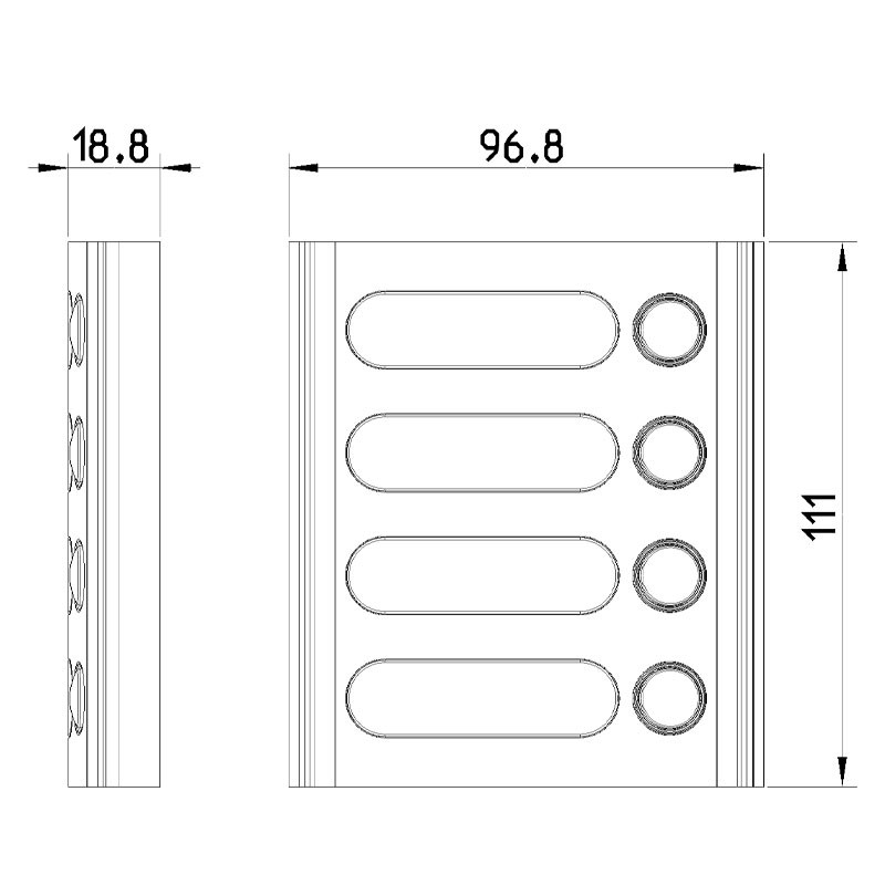 Targa modulo base Vimar Elvox, con 4 tasti, colore grigio 7035. Tipo di montaggio incassato. Dimensioni: 18,8x96,8x111.