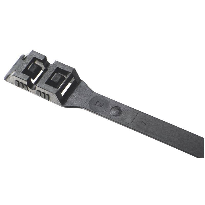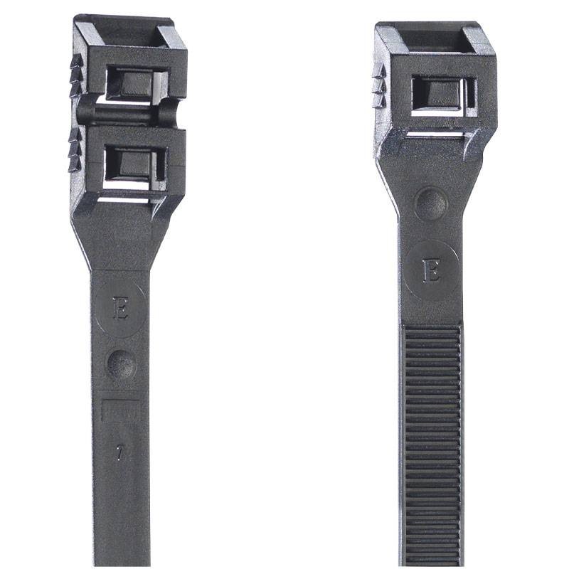 Fascette a testa piatta Elematic con cremagliera esterna, installabili senza utensile, resistenti ai raggi UV con le seguenti caratteristiche: