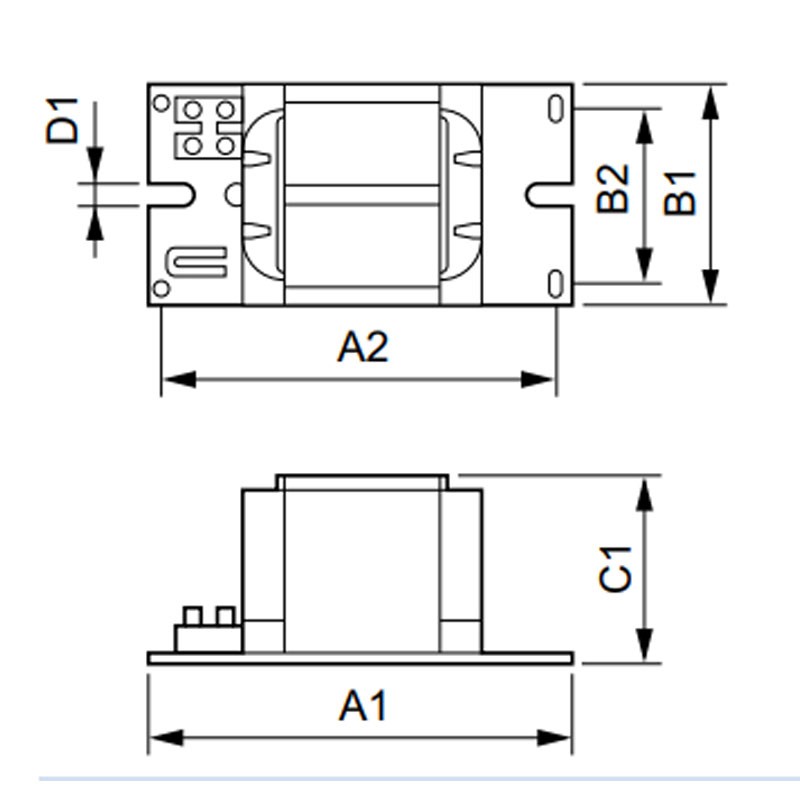 Reattore elettromagnetico Philps in rame impregnati da usare con un accenditore esterno semi parallelo per lampade CDM, CDO, MH, HPI (Plus) e SON,, con le seguenti caratteristiche: