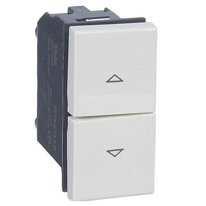 Doppio pulsante NO interbloccati Legrand Vela, serigrafato con simbolo frecce SU-GIU' per la salita e discesa delle tapparelle, 1 modulo. Da applicare sui supporti 072842,072843,072844,072846.