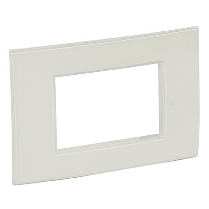 Placca quadra Legrand Vela 3 posti (moduli), colore bianco smalto effetto vetro. Da applicare sul supporto 072843.