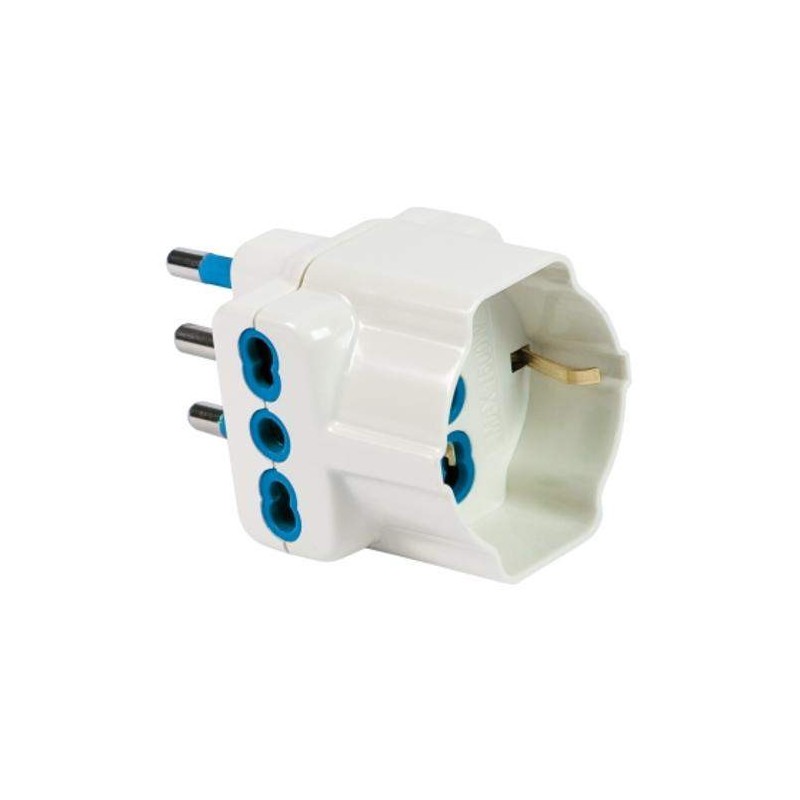 Adattatore triplo Fanton composta da spina 2P+T + 2 prese bipasso 16A e 1 Schuko tedesca, colore bianca