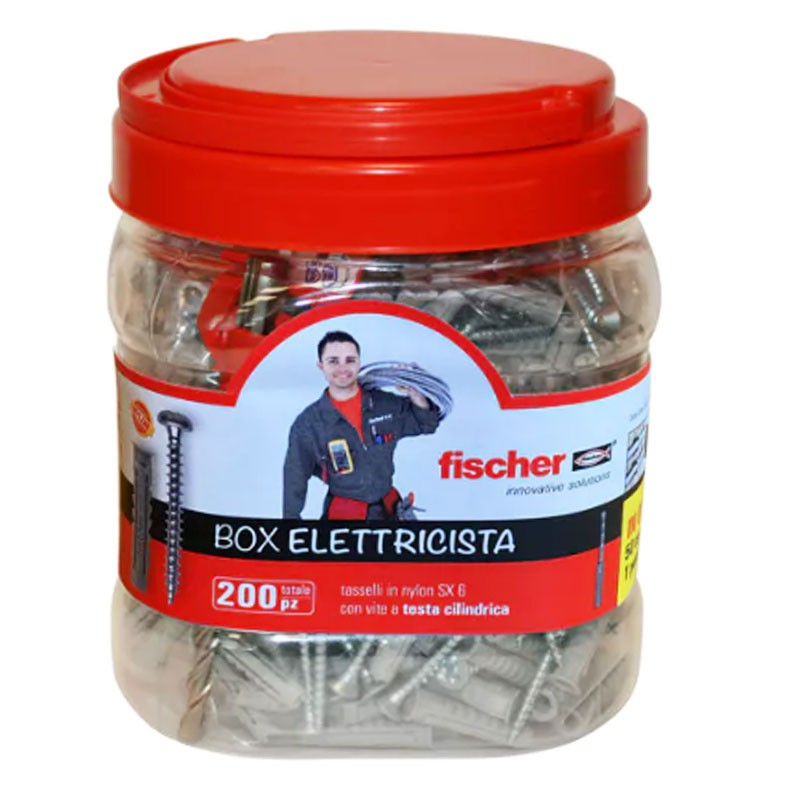 Confezione Fischer con 200 tasselli SX6 con vite e 1 punta 00553114