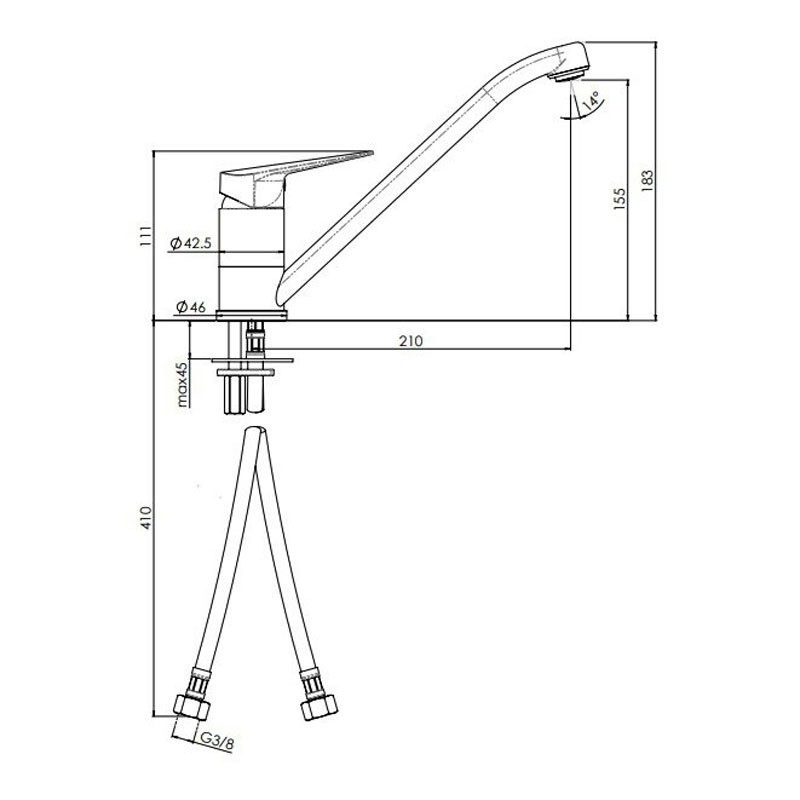 Miscelatore Nobili serie HOF per lavello cucina, con le seguenti caratteristiche: