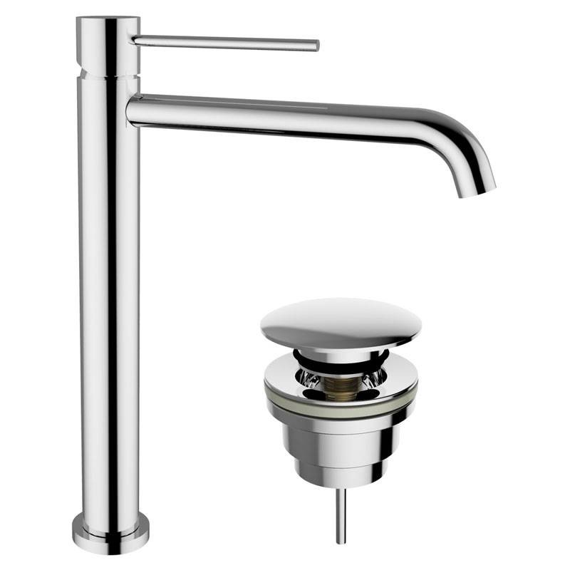 Miscelatore per lavabo alto Teorema Jabil 25 con scarico click clack, versione cromata.