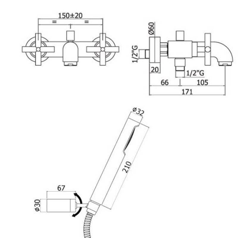 Miscelatore per vasca Paffoni Quattro con supporto a muro snodato cromato con le seguenti caratteristiche:
