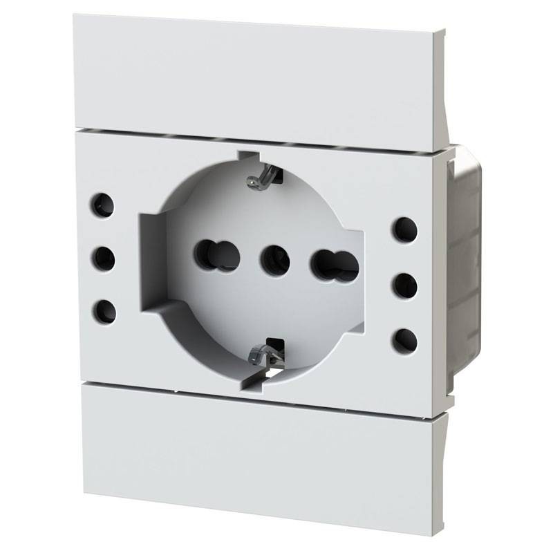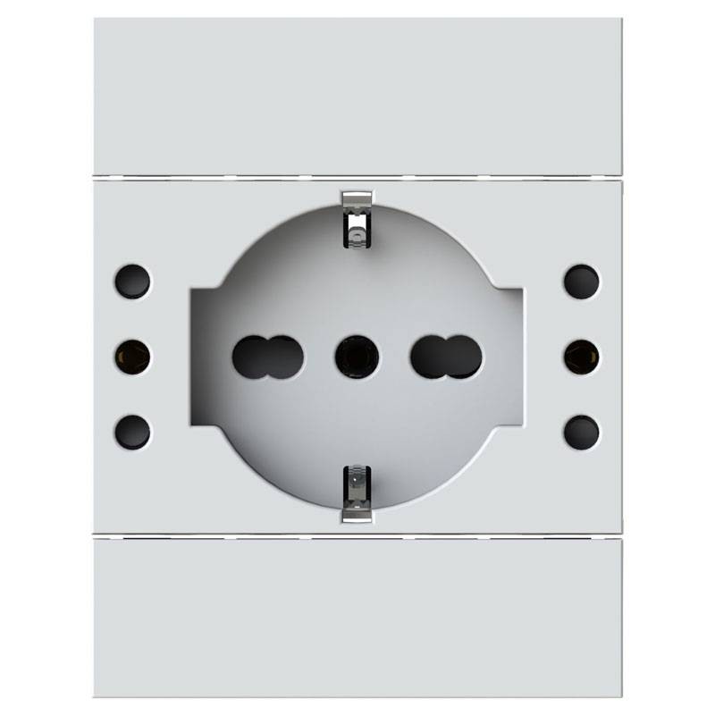Presa 4Box P503 compatibile con la serie Bticino LivingNow Bianca composta da 1 schuko, 2 prese 10A e 1 presa 10/16 A.