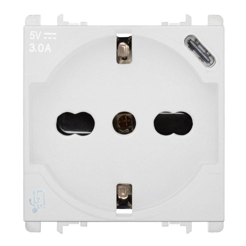 Presa schuko P40 Urmet Simon Nea 2P+T 16A-250V con unità di alimentazione USB 3.0A Tipo C: