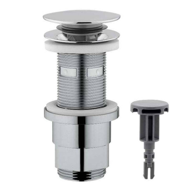 Piletta per lavabo Cgs con tappo con meccanismo a pressione Skip-up 2.0 e adattatore a innesto rapido per trasformazione in versione sempre aperto con le seguenti caratteristiche:
