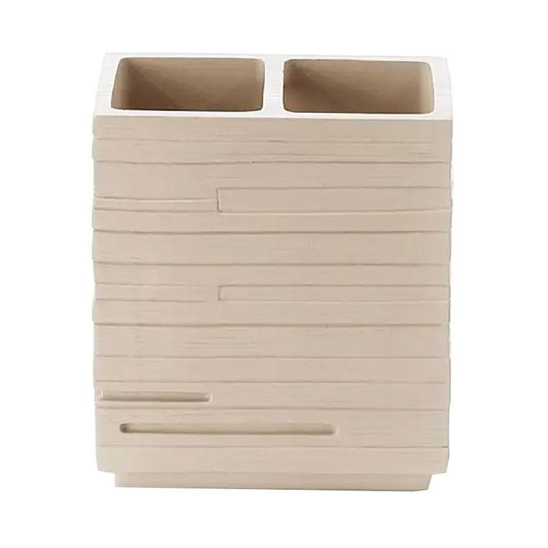 Portaspazzolino d'appoggio Gedy Quadrotto colore tortora chiaro, realizzato in resina, dimensioni 10x6,5x11,2cm.