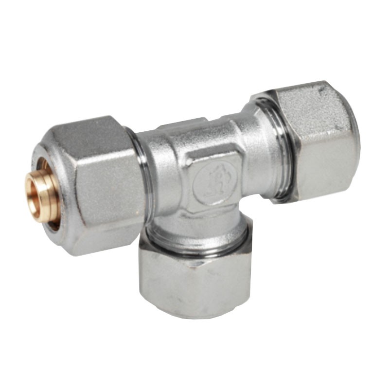 Raccordo Giacomini a T con adattatori per tubi in plastica o multistrato. Dimensioni 20 x 2.